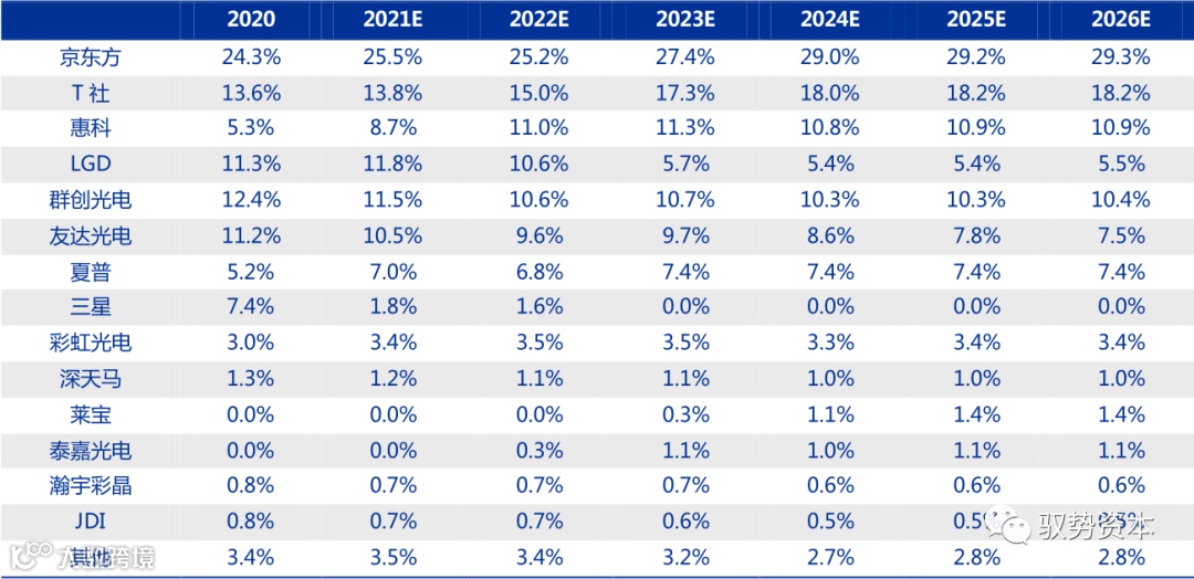 从供应商来看,中国大陆方面除京东方早期通过G8.5代线的开创性生产方案快速占领市场为全球第一外,2-4位均为台厂和韩厂,目前在NB线中大陆厂商尚未掌握主导权。