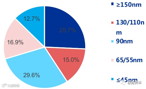 LCD显示驱动领域随着韩国中游面板制造厂的份额收缩而逐渐转移其产能至其他领域,台厂依然占据大部分份额。LCD的显示驱动IC制程主要是110-150nm以及少量90nm。