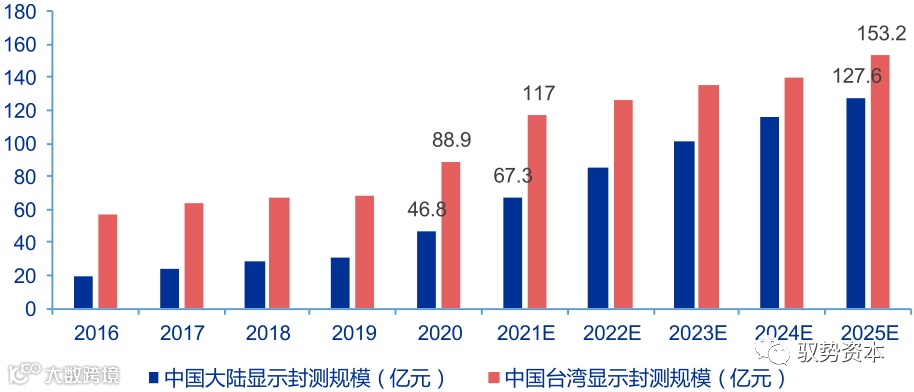 大陆显示封测厂商快速追赶,预计到2025年份额接近台厂: