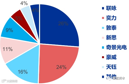 但TV领域也是目前竞争最为激烈的领域,整体份额较为接近,其中中国大陆厂商集创北方和奕斯伟也占据了一定份额,根据CINNOResearch数据,本土驱动芯片企业中,2021上半年两者合计占据了电视、显示器和笔记本等中大尺寸应用90%以上市场份额。