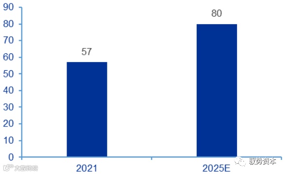 随着面板制造产能持续向国内转移,大陆已经奠定了全球面板制造中心的地位,相应的大陆市场也成为全球驱动芯片主要市场。CINNO预计2021年国内显示驱动芯片市场规模将同比大幅增长68%至57亿美金,至2025年将持续增长至80亿美金,年均复合增长率CAGR将达9%。