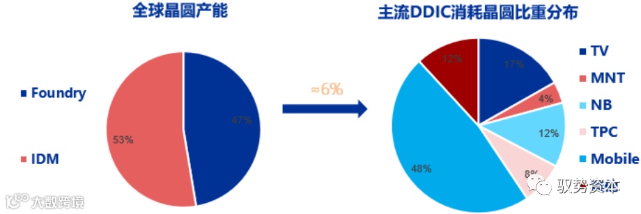 全球晶圆产能与主流DDIC消耗晶圆比重分布: