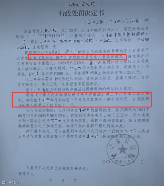 最终,涉案人员因为恶意收回《黑神话:悟空》的诈骗行为,遭到了行政处罚。
