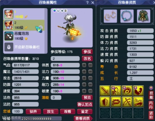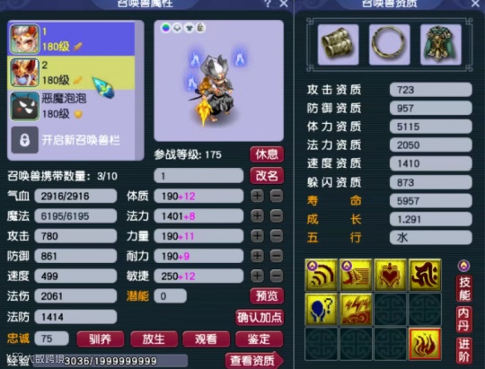 第二只召唤兽为8技能耐攻高连,资质非常给力。
