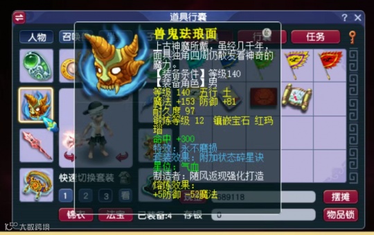 衣服位置为130级熔炼后防御234,力敏双加60的碎星,镶嵌了12锻光芒石,任务用它没毛病。
