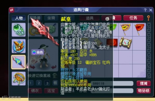 武器位置为160级初伤607,镶嵌12锻红玛瑙纯伤902.3伤,属性非常不错。