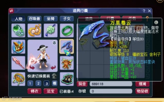 他的前排灵饰为5伤害、1速度,后排灵饰为4气血、2防御。这套配置不仅能提升面板伤害,还有增加抗性和速度的作用。除此之外,他还镶嵌了4级“健步如飞”来提升速度。