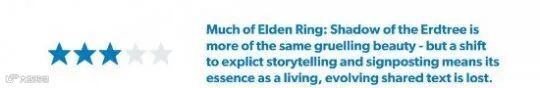 “黄金树幽影”的口碑现已解禁,但一众高分评价中,外媒Eurogmer仅给出了3分的评价。(五分制)他的理由是: