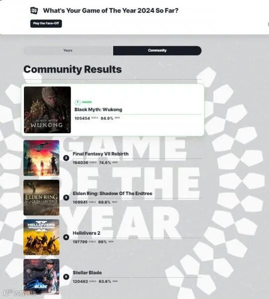 近期,外媒IGN发布了“2024年度游戏”的投票征集活动。这个完全由玩家投票进行评判的榜单,代表着最广大玩家的意见。经过连日来的数据累积,最终的TOP 10排名如下: