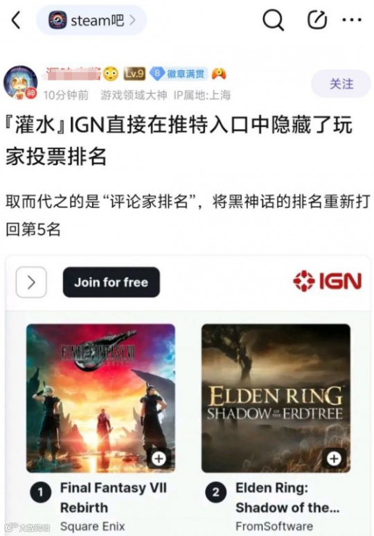 此举引发了网友们的热议,这种“此地无银三百两”的做法,恰恰说明了IGN对于榜单的排名有多么在意。