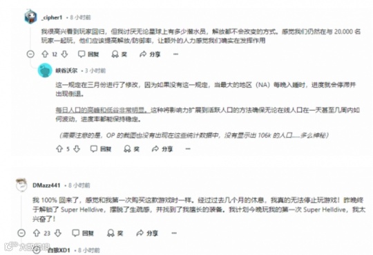 而正是凭借这次更新,《绝地潜兵2》的玩家开始了回流。自9月17日以来,每天的在线玩家峰值都能达到6万人以上。社区内重新开始活跃起来,大伙再度找到了最初入坑这款游戏时的乐趣。