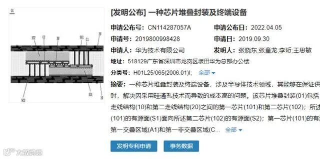 近日,华为公司首次公开了一项涉及芯片堆叠技术的发明