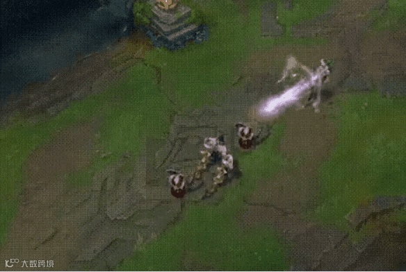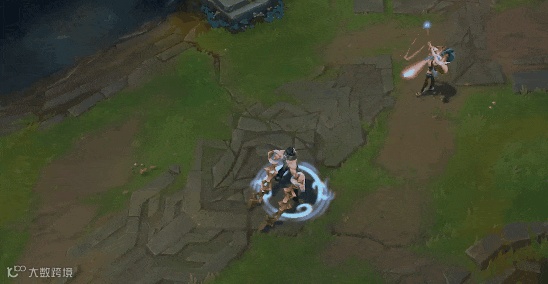 阿萝拉跳向选定方向,释放出一片灵魂激波,对命中的敌人造成伤害和减速。区域内的敌人会被困在其中,而阿萝拉则可以从一侧的区域边界传送至另一侧。