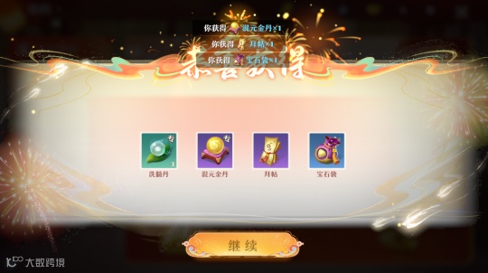 52级可领取:混元金丹*1(专)、宝石灵匣*1、百炼玉*1