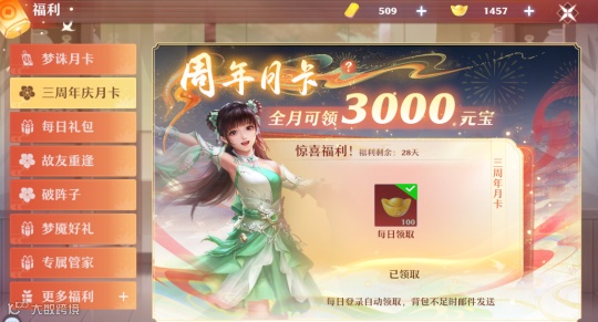 目前叶子猪正在进行梦幻新诛仙【三周年】新服活动——