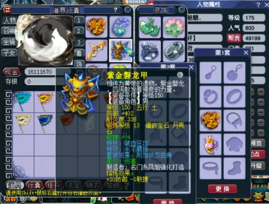 150级不磨破血狂功男衣,13锻月亮石,熔炼后防御+412,敏捷+23。