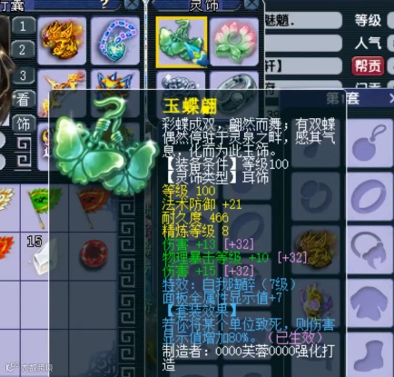 100级耳饰,主属性法防,下排2伤害1物暴,带7级自我陶醉。