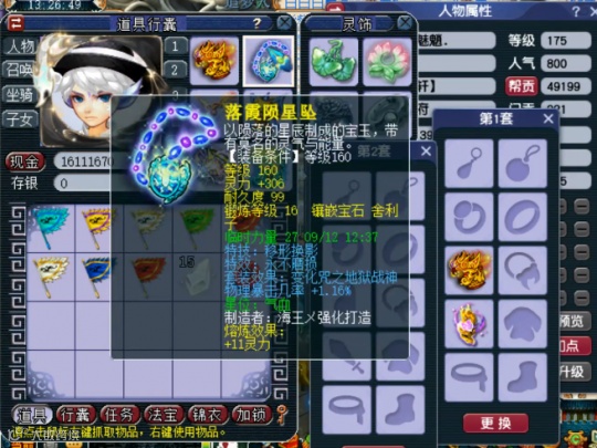 160级不磨项链,附加物暴几率+1.16%,16锻舍利子,熔炼后灵力+317。