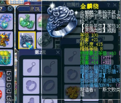 100级戒指,主属性伤害,下排2伤害1物暴,带7级自我陶醉。