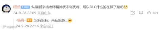 但游戏科学的创始人杨奇,却给玩家们泼了盆冷水。先是在微博评论区,杨奇回应玩家DLC还没有开始开发,自己尚在旅游中。