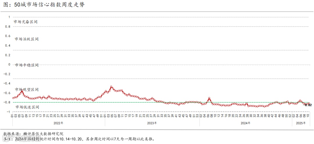 2、2025年第10周重点50城的市场信心指数为-0.82,较上周上升0.01,仍位于市场低迷区间。当前在房价持续下跌、新房成交动力相对不足等情况下,市场预期全面稳定和信心的恢复仍需要时间。