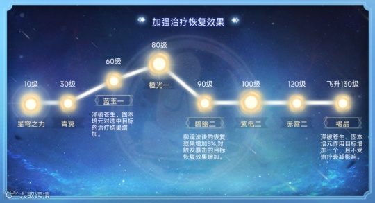 蓝玉1和蓝玉2的选择应参考御魂法决和玩家个人的习惯而定,如果御魂法决有学万物回春且游戏风格常用万物回春的朋友应该选择蓝玉2,蓝玉2的效果是增加治疗技能等级×1的治疗量(对特技无效),由于增加的治疗量是固定值,自然是对群体治疗的收益更大,换言之奶的单位越多收益越大,可以说这个星穹就是为万物回春而生。