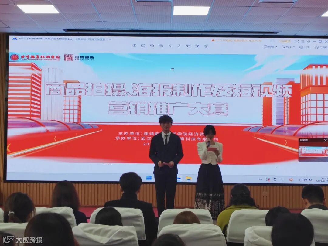当今电子商务日益繁荣,专业技能和创新能力的重要性日益凸显。为践行我司“以赛促教、以赛促学”指导思想,检验学生电子商务技能能力,创造一个给学生展示电商技能水准的舞台,近日,武汉雅博科教曲靖职业技术学院校企合作电子商务班举办商品拍摄、海报制作及短视频营销推广大赛。
