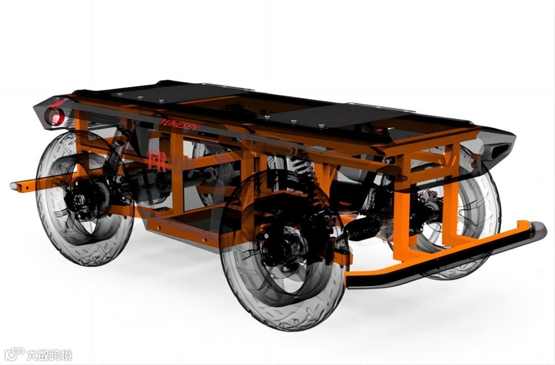 1.车规级模块化高强度非承载式一体车身设计 :