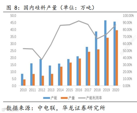 内维持价格高位。2021 年随着多晶硅企 业技改及新建产能的释放,产量将达到 45 万吨。