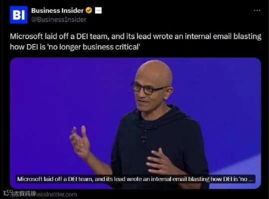 今日,外媒Business Insider报道:微软已经砍掉了一个主要的DEI团队。该团队前负责人,为此向公司数千名员工发送了一封内部邮件,觉得微软在该方面缺乏投入,认为DEI不再对业务至关重要。