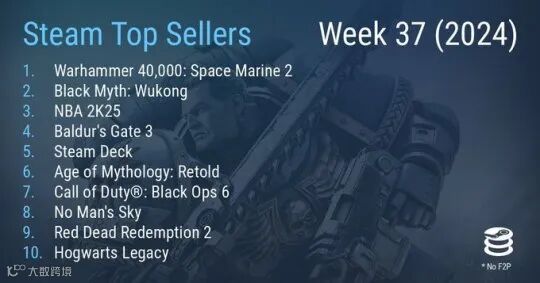 2024年Steam第37周销量排行TOP 10: