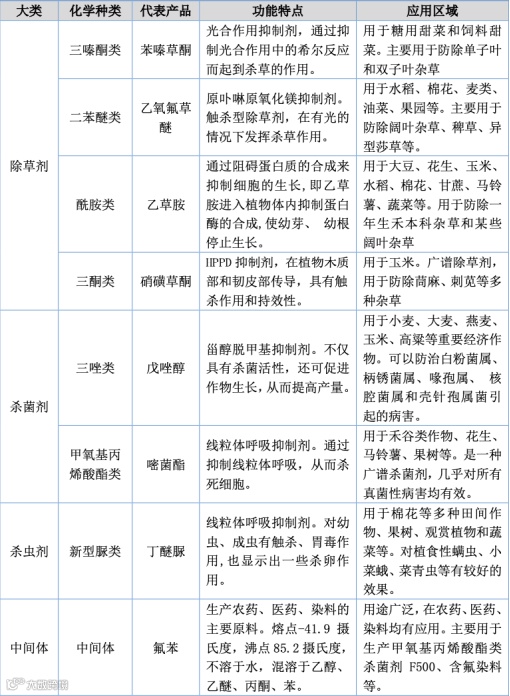 简单来说,目前农药市场其实就是三分天下,除草剂占据半壁江山,剩下杀虫剂和杀 菌剂占据剩下一半。