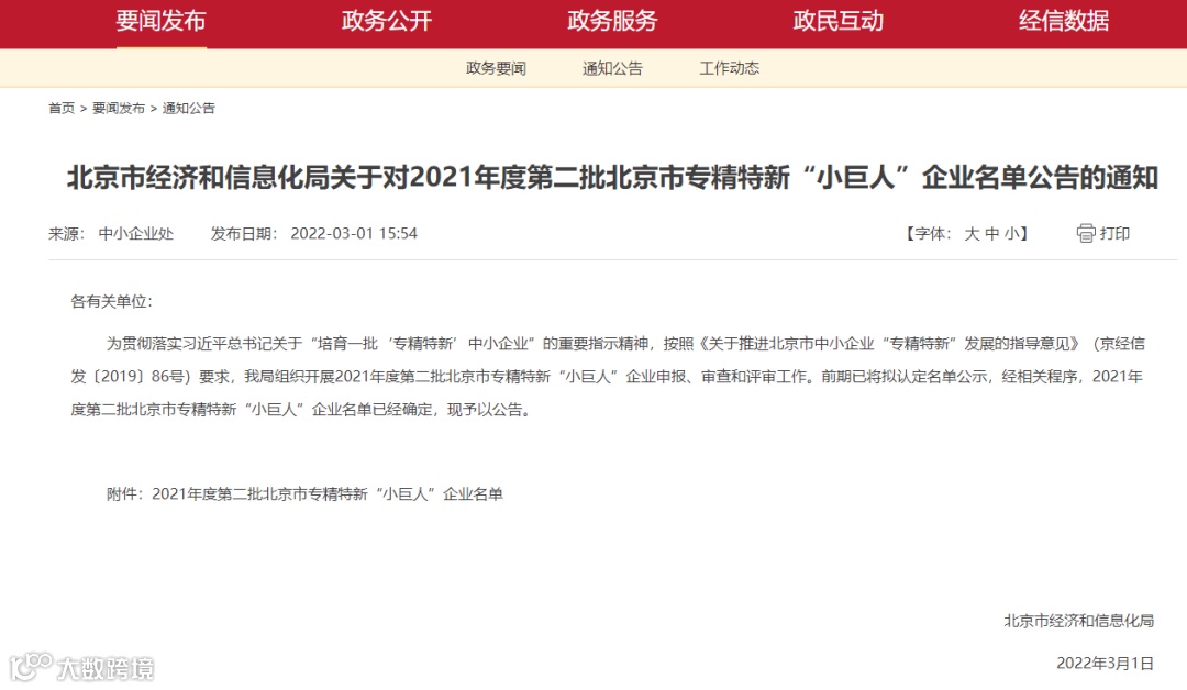 “北京市经济和信息化局”公示的通知