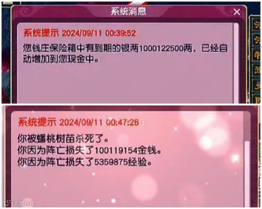 这应该是全梦幻里最心痛的阵亡惩罚?这位玩家刚刚拿到保险箱里的10亿梦幻币,还没在手里捂够10分钟,接着就因为副本阵亡损失了1亿。看到这系统提示真是心都在滴血啊,老哥赶紧整只皮皮龙吧!