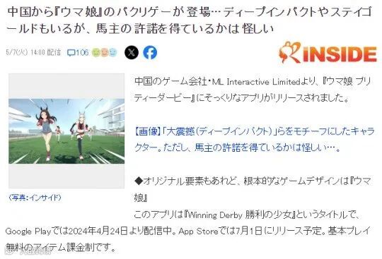 而最先注意到这款游戏,还就是日本玩家,他们发现《Winning Derby 勝利の少女》游戏里出现了许多现实中名马的名字。原本的《赛马娘》手游对此当然是拥有授权的,但这款国产游戏是否能遵循这点,就得划上个问号了。