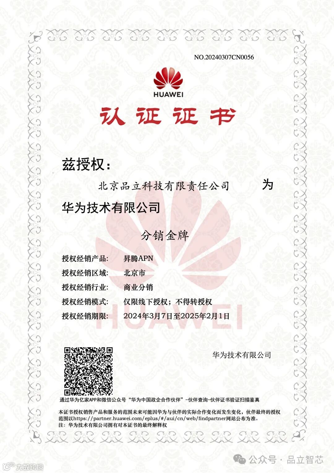 在当今科技飞速发展的时代,企业间合作成为了推动行业进步的重要动力。北京品立科技,一家在人工智能行业享有盛誉的公司,凭借其卓越的技术实力和市场表现,成为华为昇腾产品线分销金牌合作伙伴。这一合作不仅为双方带来了无限的商业机遇,也为整个人工智能行业注入了新的活力。