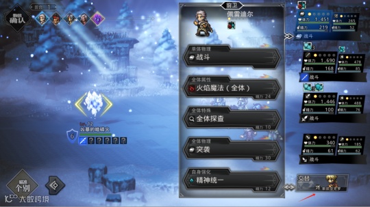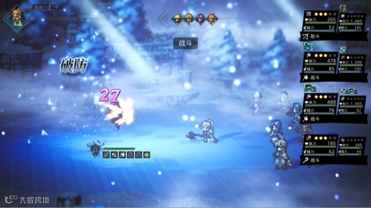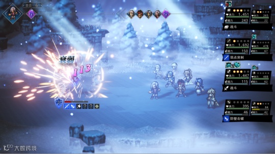 战斗方面简单的回合制玩法,也在主创们注入天才般的新设定后迸发出了别样的光辉。延续了原版的战斗系统,《歧路旅人:大陆的霸者》的对抗主要围绕敌人弱点、阵容选择、角色行动点数来展开。