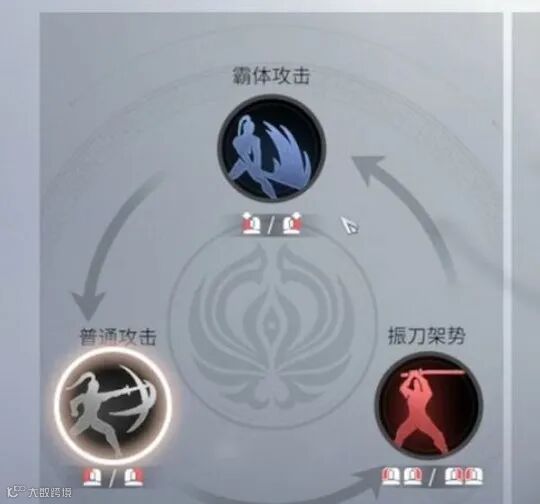 该设定的存在,不仅仅减缓了在手机屏幕上UI按键过多的压力,同时也提升了操作上限。因为在战斗过程中,玩家可以随时进行变招。例如在长按轮盘进行蓄力攻击时,正常情况下对手会用振刀来进行应对。可这时候你如果将轮盘上划,那么攻击就会变成升龙,瞬间形成完美破招!