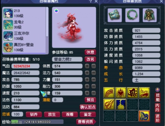 测试对象选择2只面板及其接近但成长差距较大的耐须弥,关闭特性,内丹均为静岳灵身电魂闪(具体细节可以看视频),因为是自己秒自己所以五行无影响,这里注意根据最新的法伤公式,须弥的面板每10点伤害也会对单法造成1点法伤的影响。所以我们携带了加伤害的装备保证两只召唤兽伤害差距在10以内。