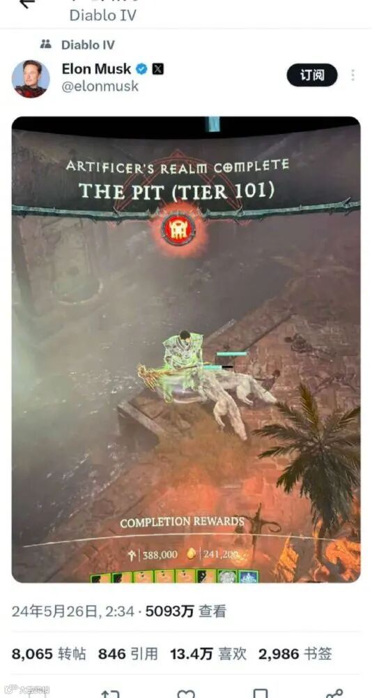 《暗黑破坏神4》新赛季更新还不满半个月,马斯克打通101层大秘境的成绩令人为之侧目。而马斯克除了本人确实是这款游戏的死忠外,暴雪为游戏进行的第四赛季更新,也为维持游戏的长期运营取得了相当不错的效果。