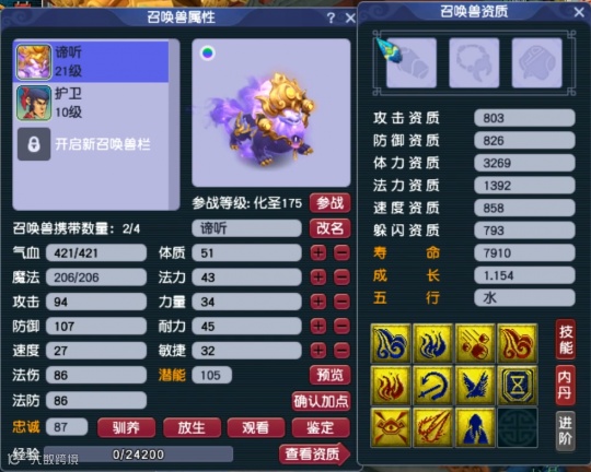 山哥制造第一谛听后,已经光速找好了超级法连和超级魔心两本超级兽诀,并通过神赋的方式让它们通通归位。如果这谛听加上赐福技能,就能成为三和神宠,不过并非完美赐福技能,还有进步空间,而且还有直接打书超级兽诀的机会,理论上能成为全服首只四季谛听。