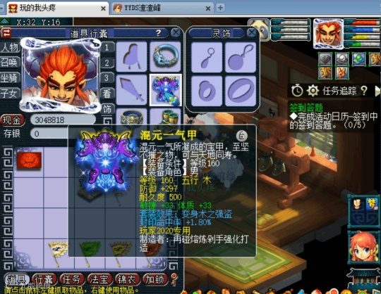 近期,又新出一件十分不错的160专用男衣,初防297点,体敏双加66,还附带1.8%的封印命中加成,虽然排不进顶级的行列,但是打打联赛华山什么的还是可以派上用场的。
