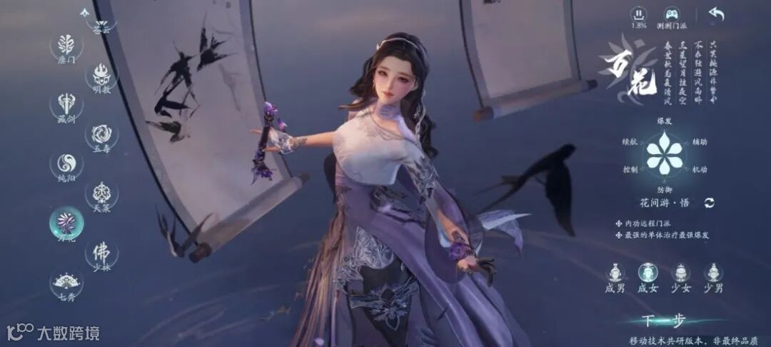 本次测试中,《剑网3无界》一口气开放了全部十九个门派的体验,与PC端原版完成了进一步接轨。而单单是将门派选择更新到十九个这一点,在武侠MMO游戏中其实就已经是独一档的存在了。