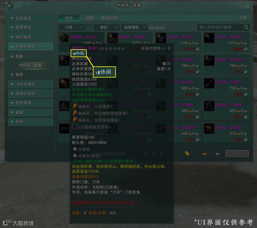鉴于现代人的快节奏生活,《剑网3无界》推出“躺平装”的设定。这些装备的装分很高,但不能用大附魔,并且装备本身也有【休闲】的标识。