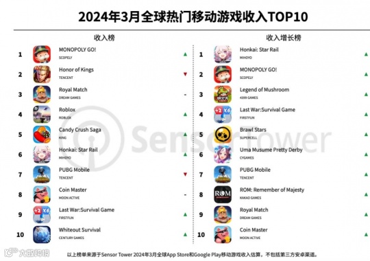 移动端游戏市场从来不是一成不变的,不断有新游戏以挑战者的姿态出现,将排在前面的游戏拉下来。Sensor Tower 商店日前公布了3月的全球手游收入TOP 10榜单,较之上期基本所有作品的排名都产生了变化。