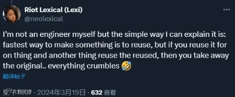 对于里面的关系,Lexical还举例进行了说明:“制作某样东西最快的方式就是重复使用。但如果你重复引用某个东西,然后之后的东西再重复引用你重复引用过的东西,而最后你把最开始那个东西改了,那一切都崩了。”