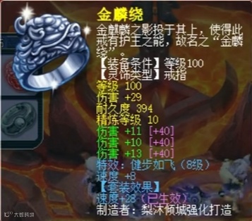 前排灵饰为100级戒指、100级耳饰,7伤害