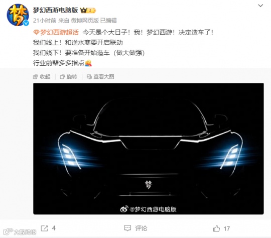 昨天,梦幻官博发布了一条公告,不仅在线上开启与网易热门网游的联动,还准备在线下计划造车。消息一出,就引起了少侠们激烈讨论。有的觉得只是整活,应该是与喜羊羊有关的灰太狼摇摇车,有的觉得梦幻与时俱进,可能要加入国产造车新势力,还有的认为高合汽车创始人与网易创始人同名,这波说不定是收购预热,众说纷纭。