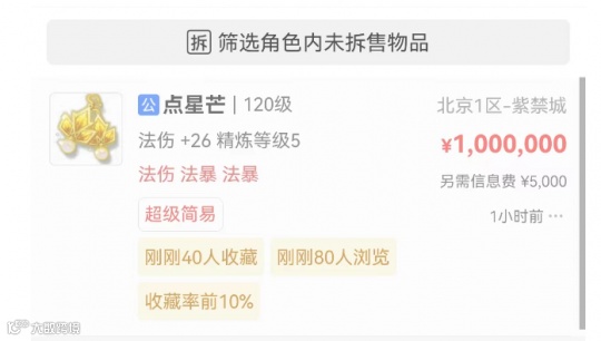 目前神器已经上架藏宝阁,摆价刚好达到7位数。一件装备改变命运,说的应该就是它吧!