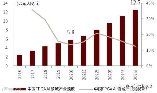 2016-2025年中国FPGA人工智能领域市场规模